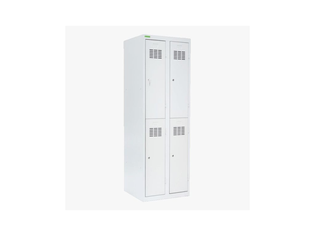 4-dverová šatňová skriňa s krátkymi dvierkami sa hodí do šatne v škole, firme či športovom zariadení. Konštrukcia skrine je zváraná z kvalitného oceľového plechu 1. triedy s povrchovou úpravou.