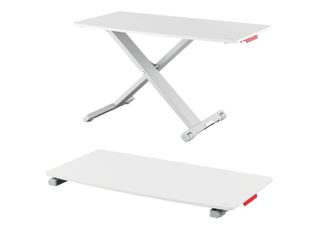 Tento „stôl na stole“ sa dá rýchlo nastaviť na požadovanú výšku a premení akýkoľvek bežný stôl na mobilný pracovný priestor, ktorý sa ľahko prispôsobí a zároveň zostáva pevný a stabilný v akejkoľvek výške. Pneumaticky asistované nastavenie bez námahy zdvihne dosku stola do požadovanej výšky, pohyb je vedený priamo hore a dole v jednej stope, čo šetrí miesto. Farba sivá.