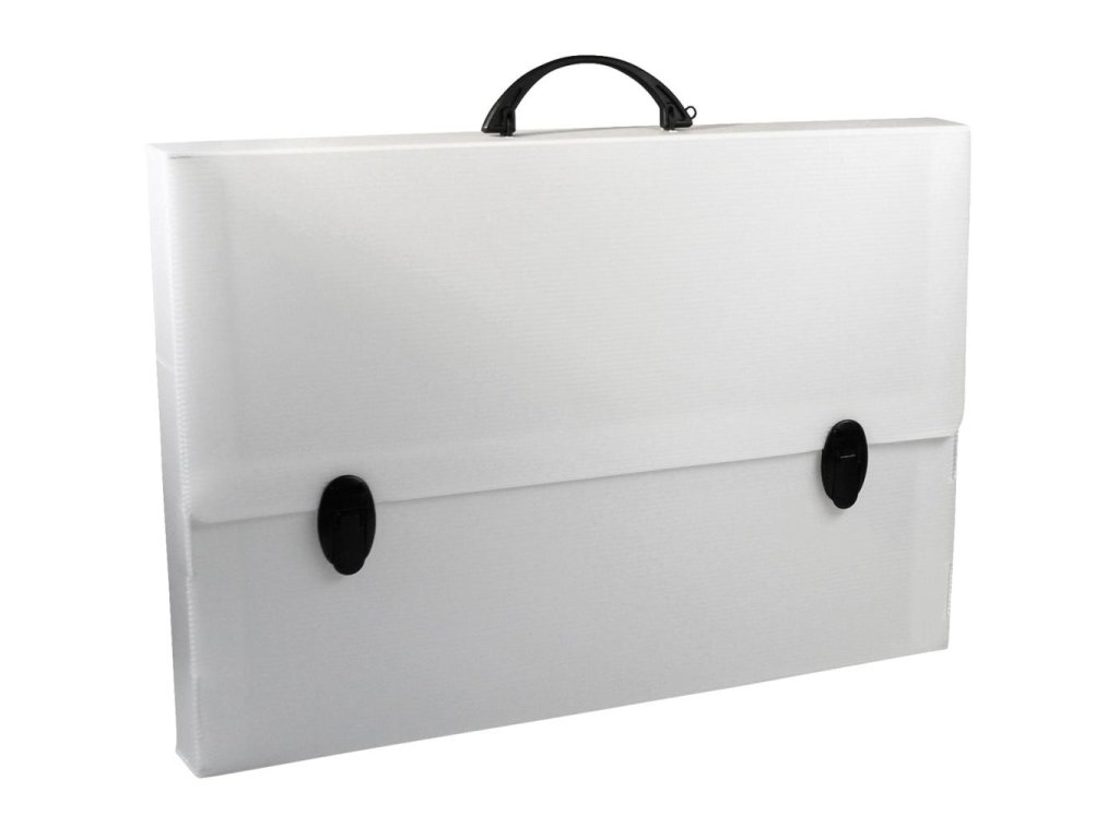 Aktovka plastová A3+ s držadlom DONAU transparentná. Box A3+ biely s rukoväťou a 2 zámkami čiernej farby, vyrobený z PP, odolný. Vhodný na formát A3, rozmery 53,5 x 37 x 5 cm.