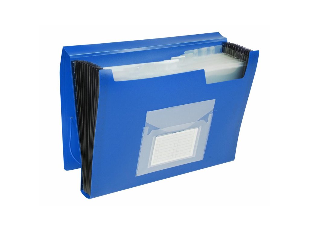 Aktovka z PP hrúbky 600 mic., vnútorné prepážky hrúbky 175 mic.. Uzatvárateľná gumičkou. Rozmery (š × v × h) 240 × 330 × 30 mm. Väčšie balenie 12 ks. Farba modrá.