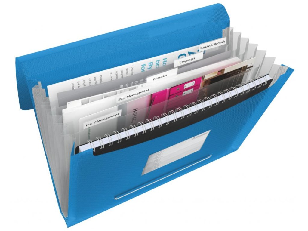 Aktovka na spisy vo sviežich farbách so štvorčekovaným dizajnom VIVIDA. Vyrobená z priehľadného polypropylénu hrúbky 0,67 mm. Ideálna k roztriedeniu dokumentov do 6 rozšíriteľných priehradok.