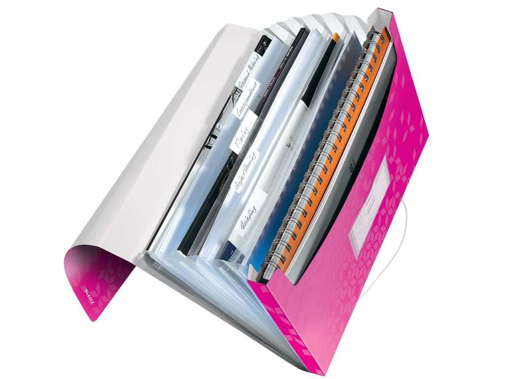 Aktovka z polypropylénu na ukladanie a prenos dokumentov do formátu A4. V dizajne WOW v žiarivých farbách. Atraktívne uzatváranie na gumičku, šesť roztiahnuteľných priehradok s indexami na popis obsahu, jedna priehradka na voľne vložené listy do formátu A4, vrecko na vizitky. Kapacita 250 listov. Väčšie balenie 5 ks. Farba metalická ružová.
