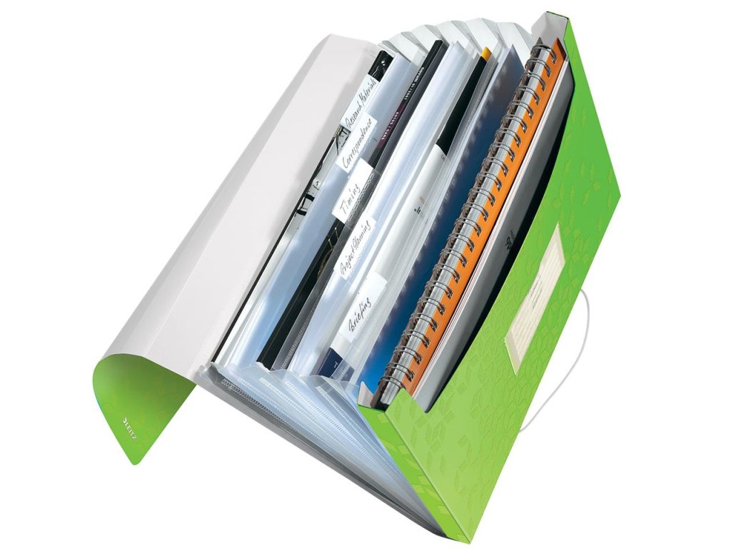 Aktovka z polypropylénu na ukladanie a prenos dokumentov do formátu A4. V dizajne WOW v žiarivých farbách. Atraktívne uzatváranie na gumičku, šesť roztiahnuteľných priehradok s indexami na popis obsahu, jedna priehradka na voľne vložené listy do formátu A4, vrecko na vizitky. Kapacita 250 listov. Väčšie balenie 5 ks. Farba metalická zelená.