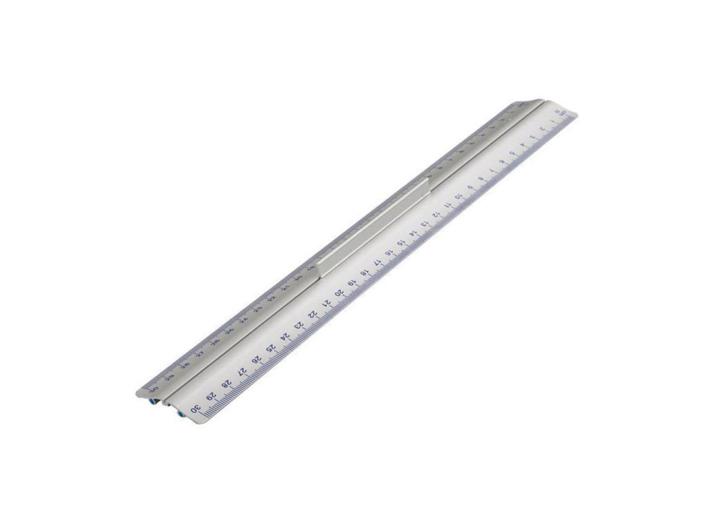 Pravítko vyrobené z eloxovaného hliníka. Metrické značenie v cm/ mm. Obojstranná oderuvzdorná stupnica mierky v modrej farbe. Dva protišmykové pásiky na spodnej strane, rukoväť pre lepšie držanie. Vhodné pre pravákov aj ľavákov. Šírka 4,5 cm.