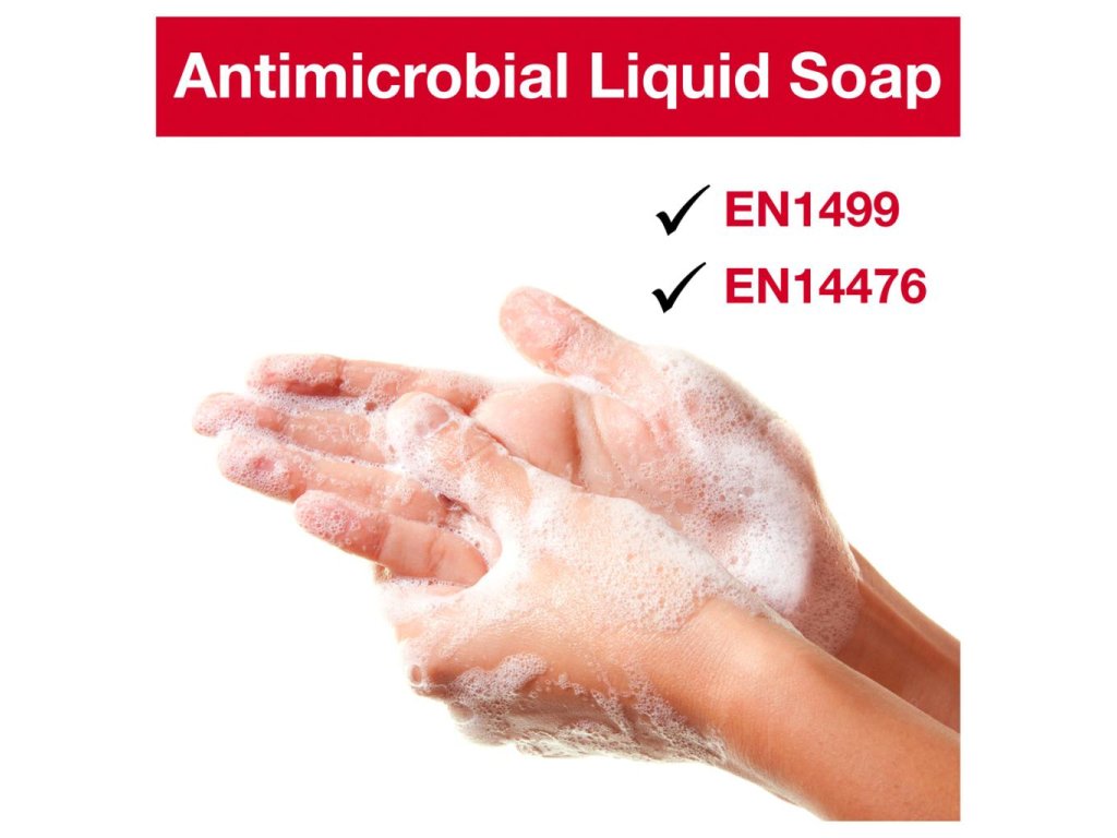 Tork antimikrobiálne tekuté mydlo na ruky na základe kyseliny mliečnej je nekompromisné k problémovým mikroorganizmom a dokonalé na použitie v prostredí na spracovanie potravín. Zloženie obsahuje 100 % rastlinné aktívne zložky. Zloženie je 100 % biologicky odbúrateľné. Vhodné pre všetky Tork zásobníky na mydlá a dezinfekčné prostriedky (S4).