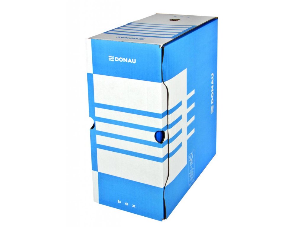Archívny box z trojvrstvovej lepenky s certifikátom FSC® (drevo na jej výrobu pochádza z lesov, obhospodarovaných udržateľným spôsobom), bez obsahu kyseliny (pH 7,5). Vhodný na archiváciu dokumentov do formátu A4 s otvorom na ľahkú manipuláciu. Možnosť archivovať aj zakladač Donau. Predtlače na popis na dlhšej i kratšej strane umožňuje skladovanie vo vodorovnej aj zvislej polohe. Box je využiteľný samostatne alebo v kombinácii s archivačnými krabicami. Gramáž 390 g. Väčšie balenie 20 ks.