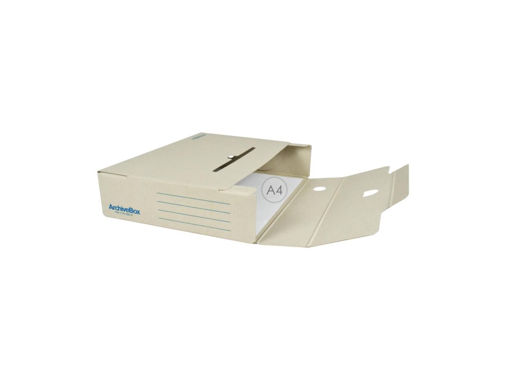 Systém archívnych boxov a škatúľ z vlnitej lepenky. Dodávané v rozloženom stave. Farba prírodná hnedá. Archívny box z hladkej ručnej lepenky, 1 000 g/ m². Konštrukčné riešenie boxu umožňuje rýchly prístup k vloženým dokumentom. Rozmery