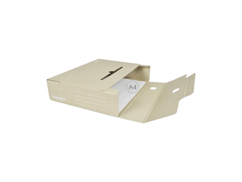 Systém archívnych boxov a škatúľ z vlnitej lepenky. Dodávané v rozloženom stave. Farba prírodná hnedá. Archívny box z hladkej ručnej lepenky, 1 000 g/ m². Konštrukčné riešenie boxu umožňuje rýchly prístup k vloženým dokumentom. Rozmery