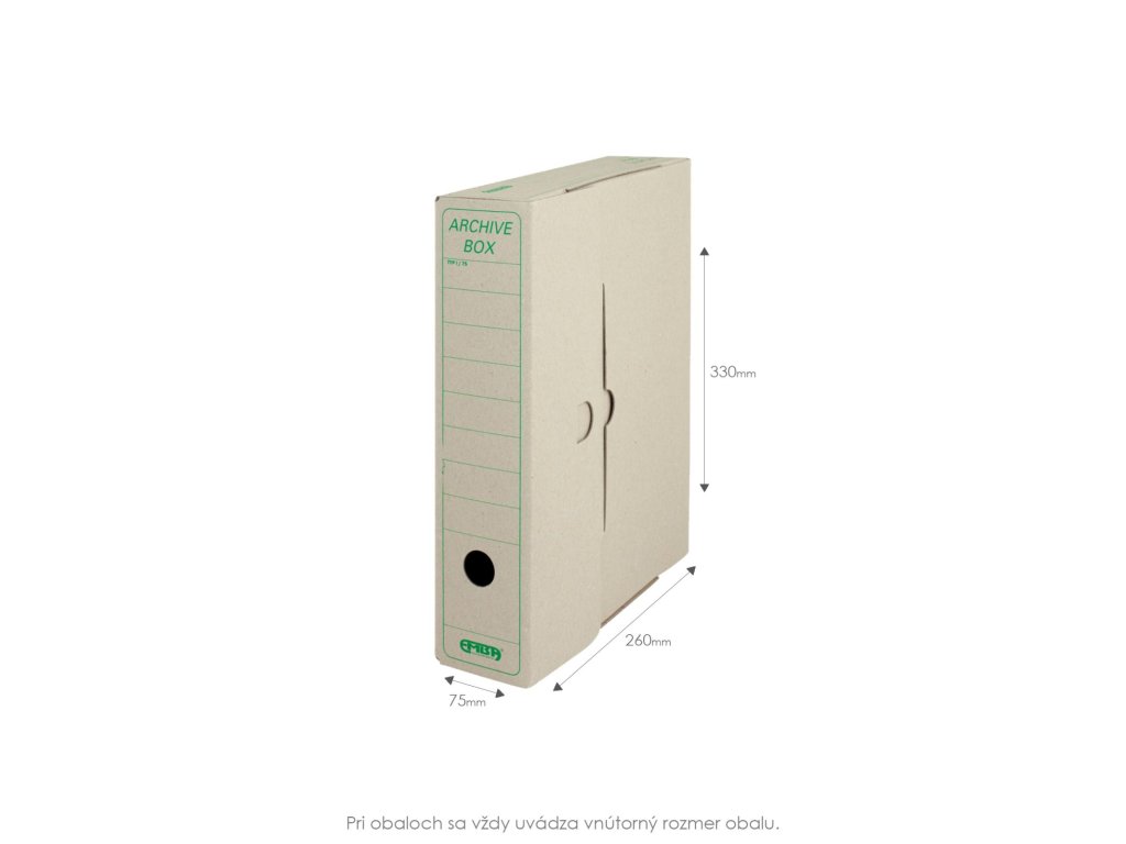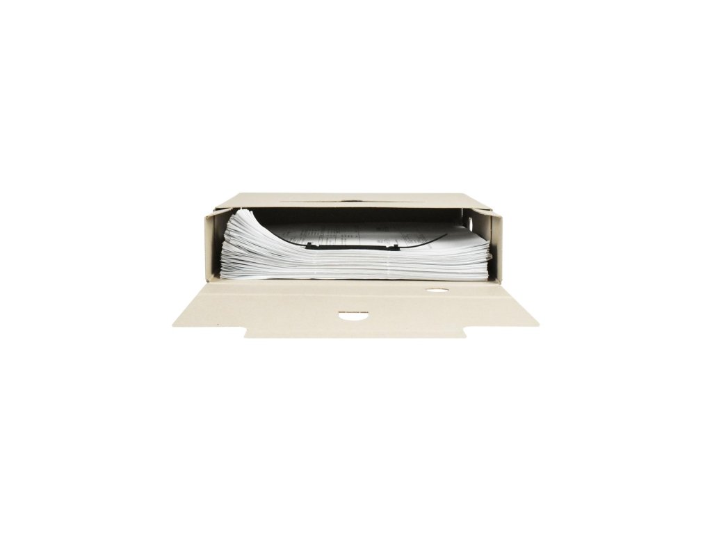 Ekologický výrobok. Box z recyklovateľnej špeciálne impregnovanej lepenky odolnej voči atmosferickej vlhkosti na dlhodobé uloženie záznamov. Tri varianty postavenia, kvalitná sieťotlač. Vhodný v kombinácii so skupinovým boxom. Väčšie balenie 25 ks. Rozmery (š x v x d) 75 x 330 x 260 mm.