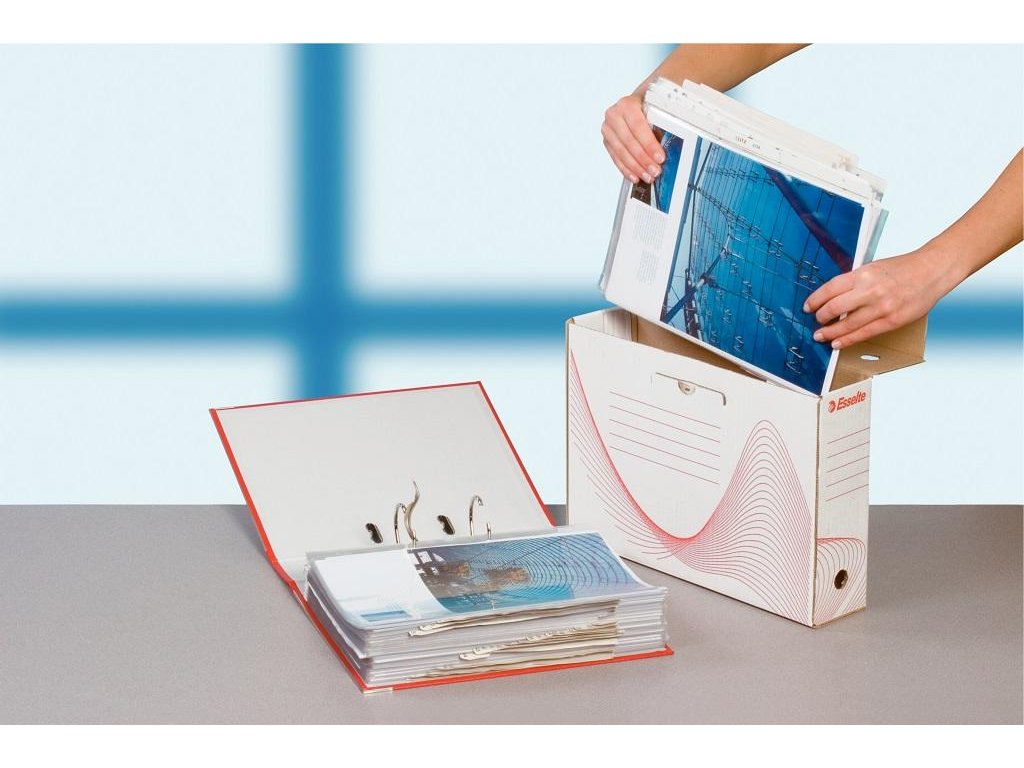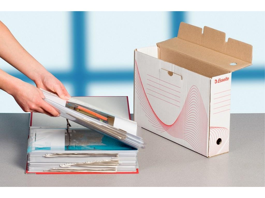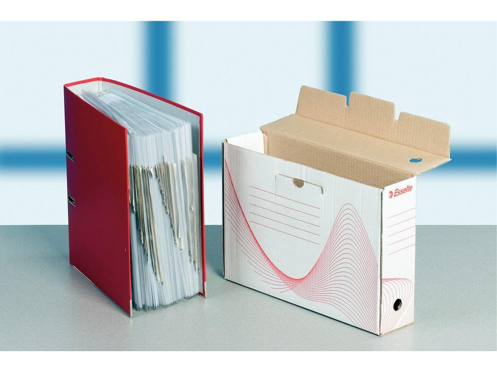 Archívny box z recyklovaného kartónu vo sviežej farbe VIVIDA na archiváciu dokumentov do formátu A4 s otvorom na ľahkú manipuláciu. Predtlač na popis na dlhšej i kratšej strane umožňuje skladovanie vo vodorovnej aj zvislej polohe. Box je využiteľný samostatne alebo v kombinácii s archivačnými krabicami. Väčšie balenie 25 ks.