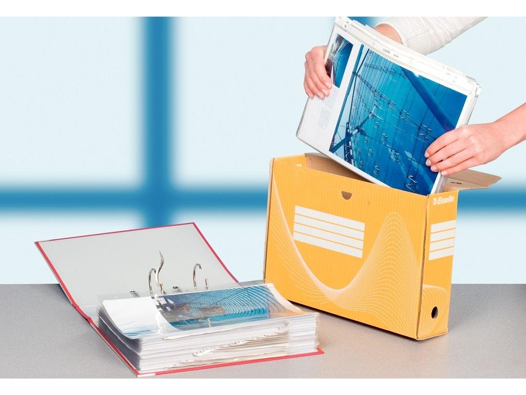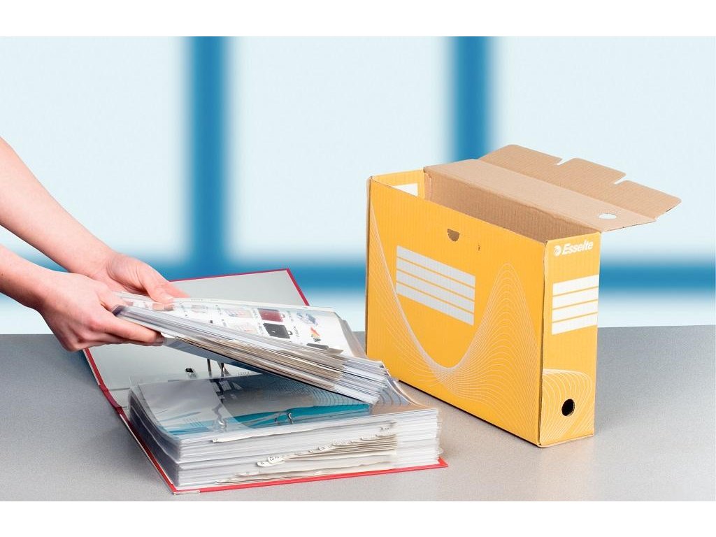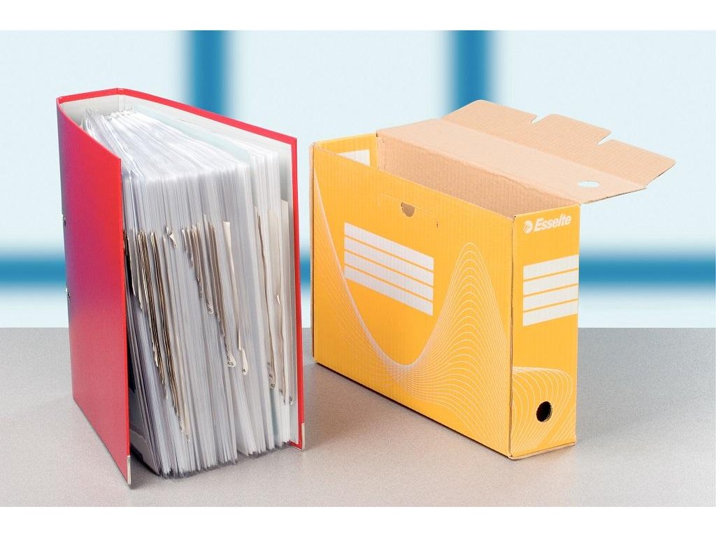Boxy s kapacitou 1000 listov formátu A4. Šírka chrbta 100 mm.Archívne boxy sú z recyklovného kartonu s otvorom pre ľahkú manipuláciu určené na archiváciu dokumentov. Predtlač na popis na dlhšej a kratšej strane umožňuje ich skladovanie vo vodorovnej aj zvislej polohe. Boxy je možné používať samostatne alebo v kombinácii s archivačnými krabicami.