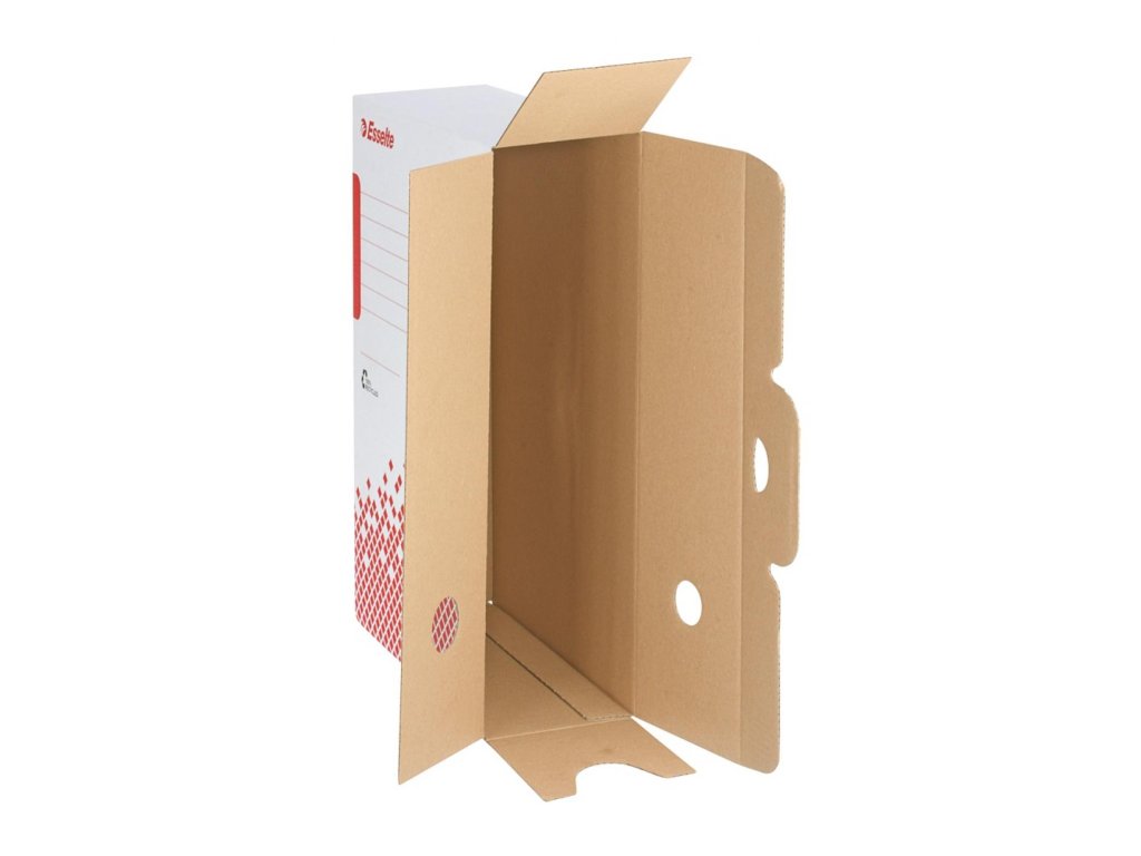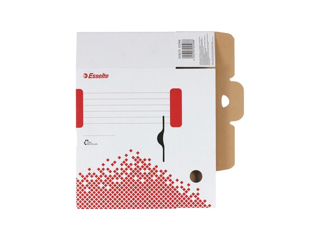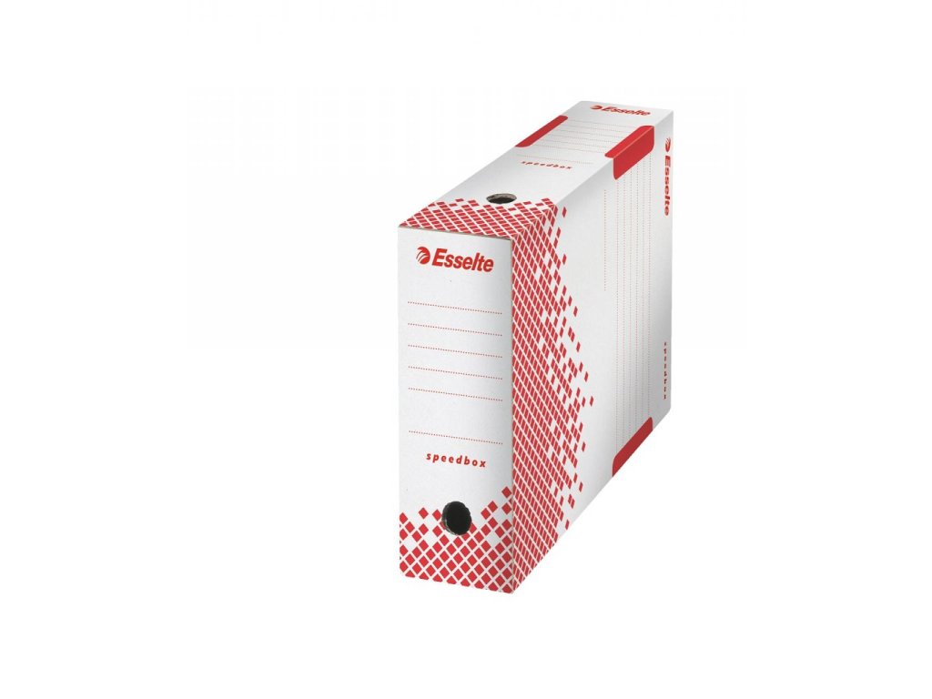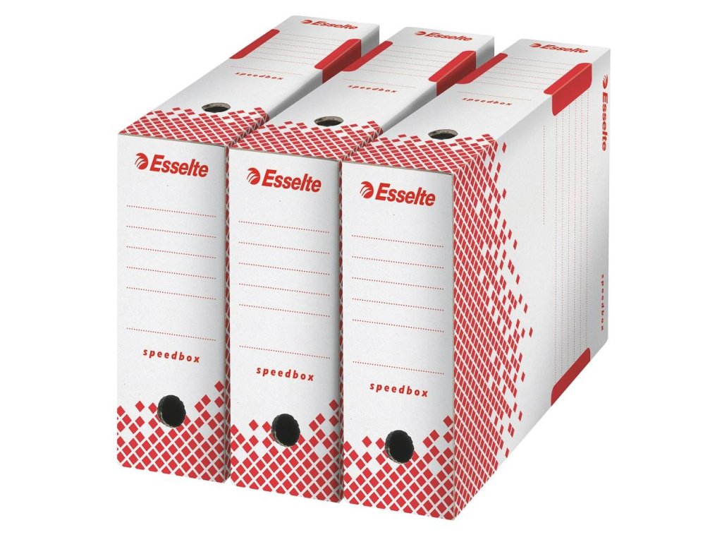 Archívny box z archivačného systému Speedbox. Dvojité bočnice chránia box pred otvorením a spevňujú okolie chrbtového úchytu. Vhodný pre dokumenty formátu A4. Ideálna veľkosť pre archiváciu v policiach, určené pre vertikálnu a horizontálnu archiváciu. Vyrobený zo 100% recyklovanej vlnitej lepenky. Chrbát 100 mm. Väčšie balenie 25 kusov.