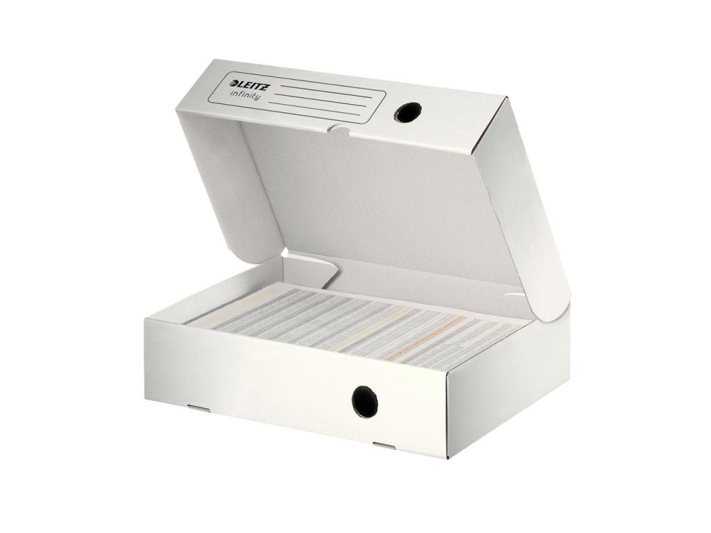 Špeciálny archivačný systém Leitz Infinity splňuje všetky kritériá a požiadavky medzinárodnej normy ISO 16245 pre dlhodobú a náročnú archiváciu dokumentov. Je vyrobený z novo vyvinutej lepenky, ktorá je 100% acid free (alkalická).