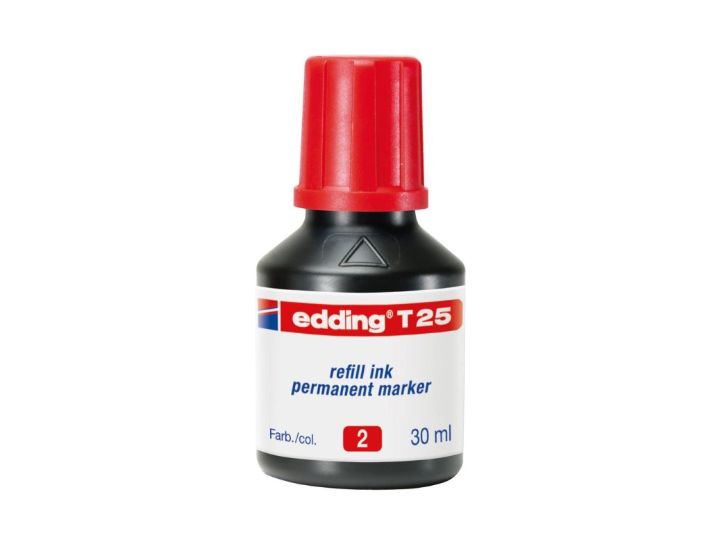 Atrament s kvapkovým dávkovačom na dopĺňanie permanentných popisovačov edding 2000 C, 2200 C, 400, 500, 550, 800, 850, 370 a 390. Pri dopĺňaní vložte prednú časť popisovača špičkou do fľaštičky a po niekoľkých minútach bude popisovač pripravený k opätovnému použitiu. Obsah 30 ml. Tento chemický prípravok je nebezpečný.