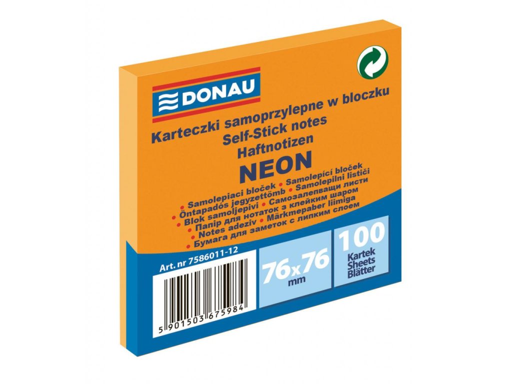 Bloček Donau neónový, 76 x 76 mm, oranžový, 100 lístkov