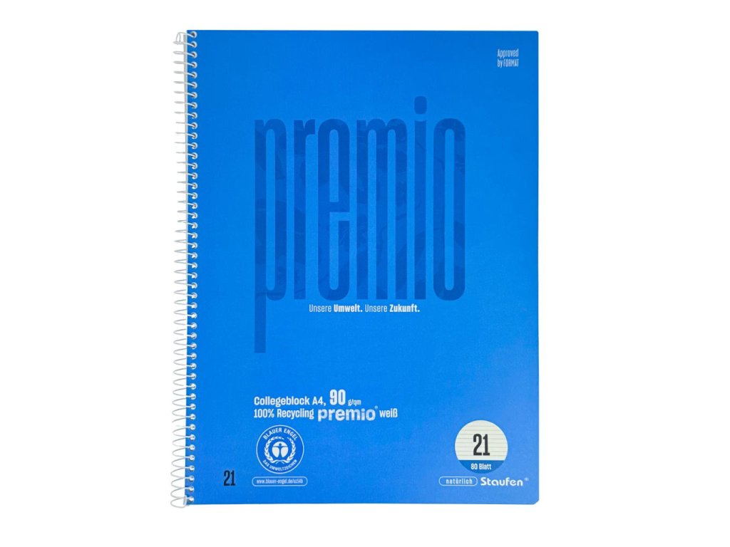 Vysokokvalitný blok formátu A4 s kovovou bočnou špirálou, vyrobený zo 100 % recyklovaného papiera s hmotnosťou 90 g / m².
