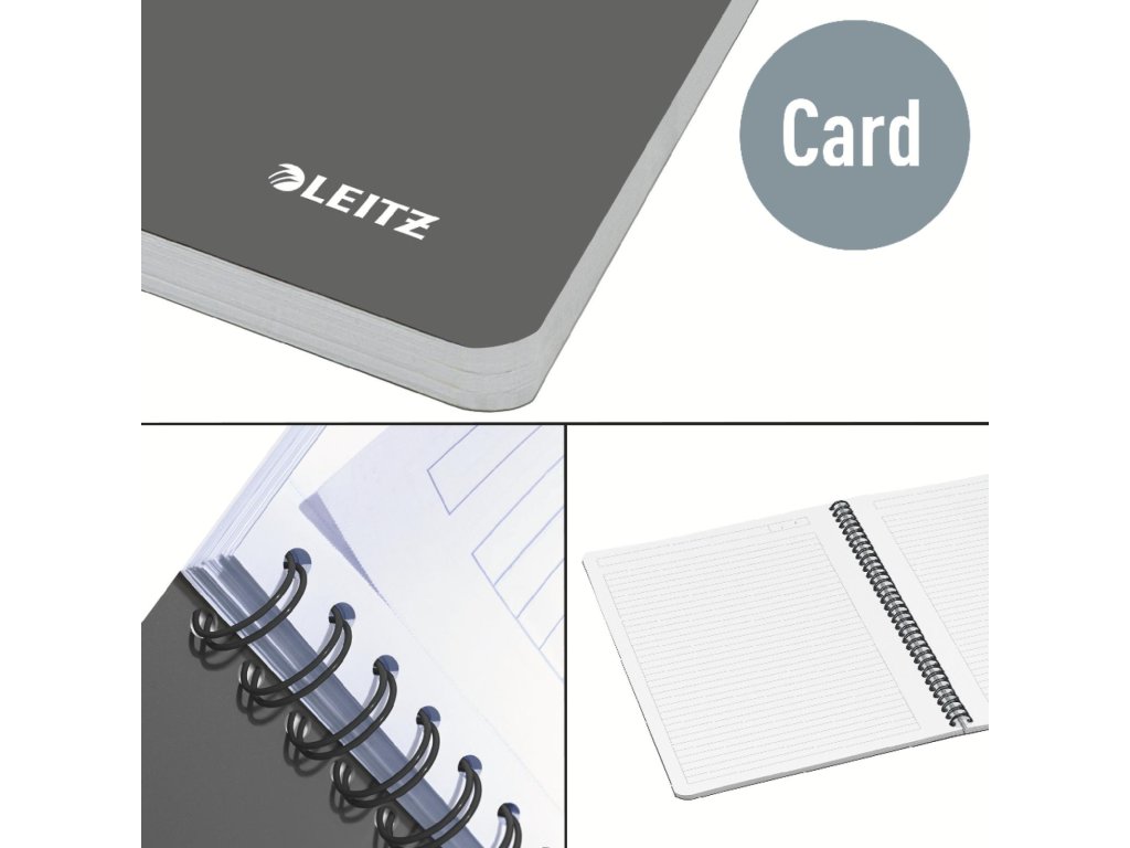 Špičkový zápisník na každodenné používanie. Každý zápisník má 90 listov papiera najvyššej kvality s gramážou 80 g/m2, drôtená väzba umožňuje 360-stupňové otváranie, laminované kartónové dosky.