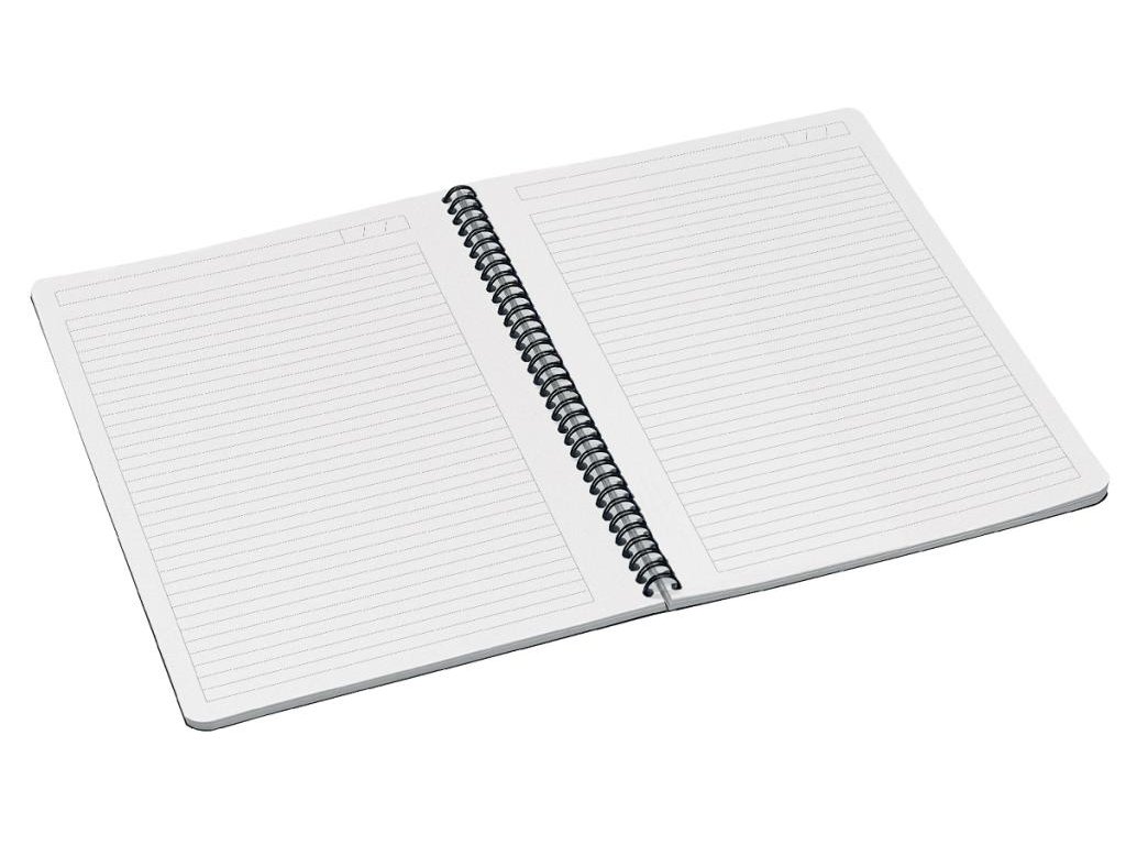 Špičkový zápisník na každodenné používanie. Každý zápisník má 90 listov papiera najvyššej kvality s gramážou 80 g/m2, drôtená väzba umožňuje 360-stupňové otváranie, laminované kartónové dosky.
