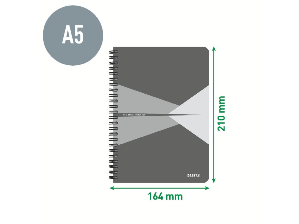 Špičkový zápisník na každodenné používanie. Každý zápisník má 90 listov papiera najvyššej kvality s gramážou 80 g/m2, drôtená väzba umožňuje 360-stupňové otváranie, laminované kartónové dosky.