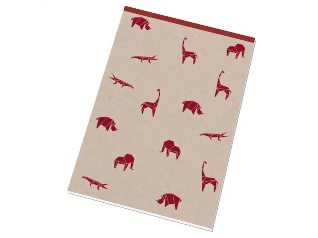 Šitý blok s recyklovaným papierom. Univerzálny linkovaný blok z recyklovaného papiera s perforáciou, zošitý skobami na kratšej strane.