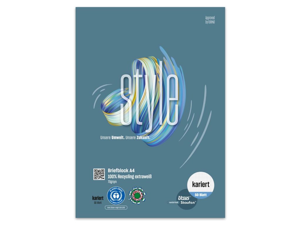 Bloky vyrobené z vysokokvalitného CO2 neutrálneho papiera gramáže 70 g/ m². Produkt ocenený environmentálnou značkou „Modrý anjel“, 100% recyklácia: výrobok vyrobený výlučne z recyklovaných vlákien, prémiový biely papier na písanie bez optických zjasňovačov, bez bielenia chlórom. Väčšie balenie 10 ks.