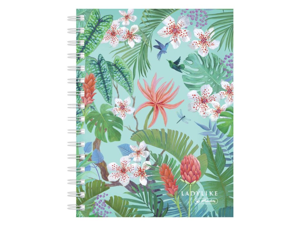 Poznámkový blok Ladylike, 100 listov, úprava štvorčeková s okrajom, 70 g/m², jednoduchá, resp. dvojitá špirála, perforácia, zaoblené rohy, motív Jungle.