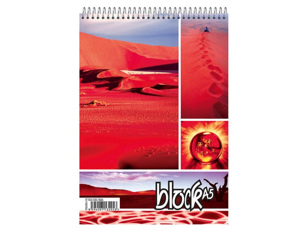 Bloky z bezdrevného papiera so špirálou navrchu, s farebnou prednou stranou a mäkkými doskami. Formát A5. Gramáž papiera: 60 g/m2. Väčšie balenie 10 ks.