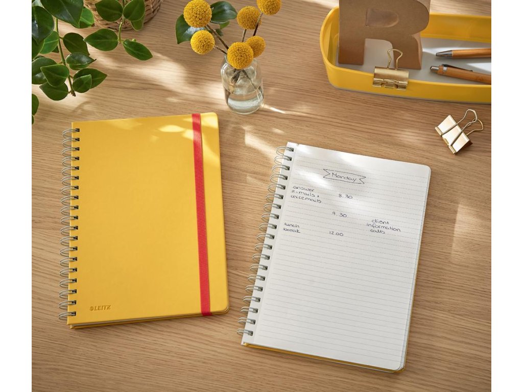 Značková kolekcia Leitz Cosy vám umožní cítiť sa ako doma, nech už vás váš pracovný deň zavedie kamkoľvek. Vďaka minimalistickému dizajnu a lákavej matnej povrchovej úprave pridáte svojmu pracovnému priestoru štýl a farbu. Zápisník Leitz Cosy veľkosti L (B5) je ideálny na každodenné písanie poznámok, pohodlne sa zmestí do tašky alebo batohu k notebooku. Tento zápisník s hebkým príjemným povrchom v prvotriednej kvalite je perfektným doplnkom vášho domova alebo kancelárie, pracovať s ním je radosť. Farba žltá.