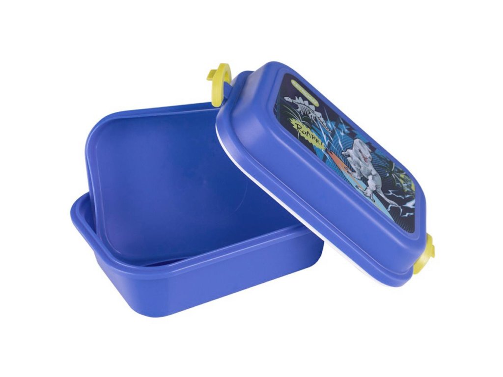 Box na desiatu s pevným uzáverom, ideálny na skladovanie jedál. S praktickou priehradkou, ktorá umožňuje oddeliť obsah boxu. Vyrobený z vysoko kvalitného plastu. Vzor: dino.