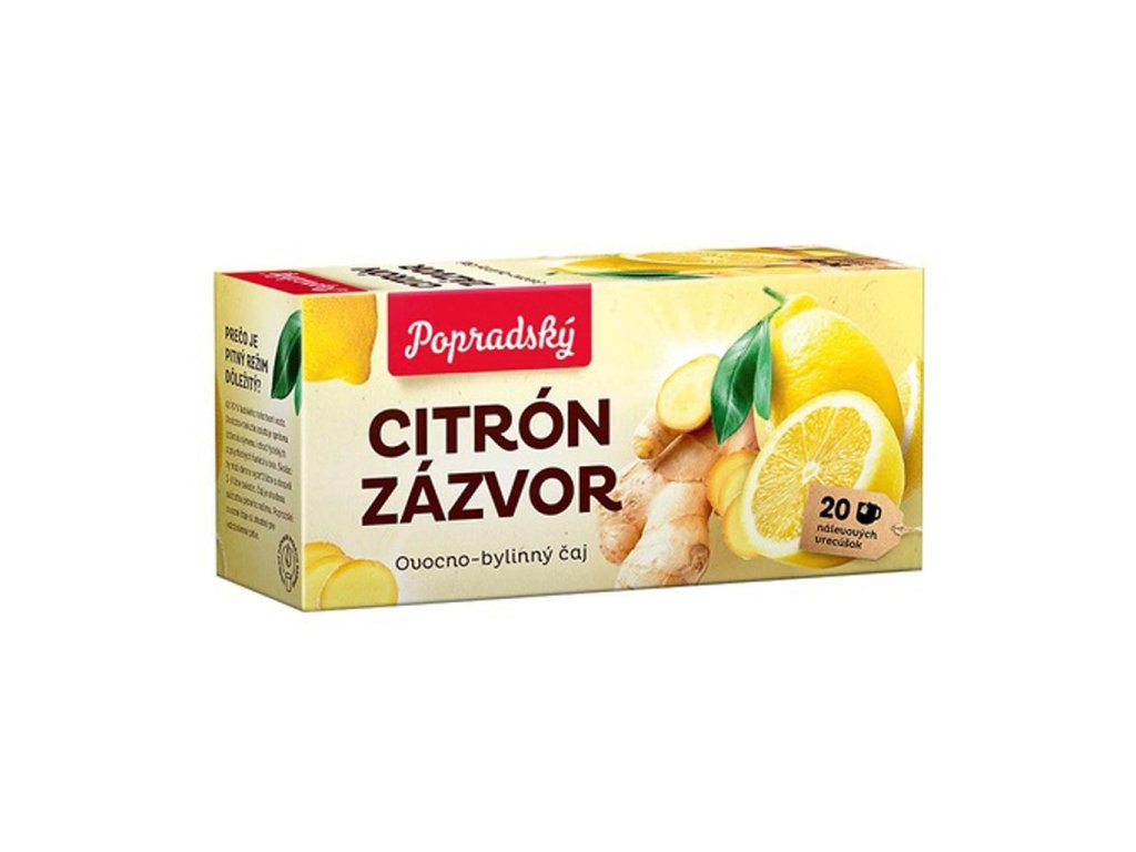 Aromatizovaný ovocno-bylinný čaj so zázvorom a s príchuťou Citrón. Porciovaný v nálevových vreckách.