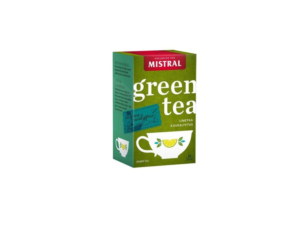 Aromatizovaný zelený čaj s príchuťou limetka a eukalyptus, porciovaný v nálevových vreckách.