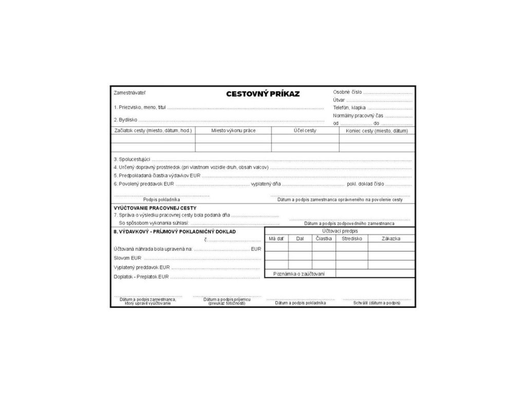 Tlačivo : Cestovný príkaz A5 blok. Balenie100 listov.