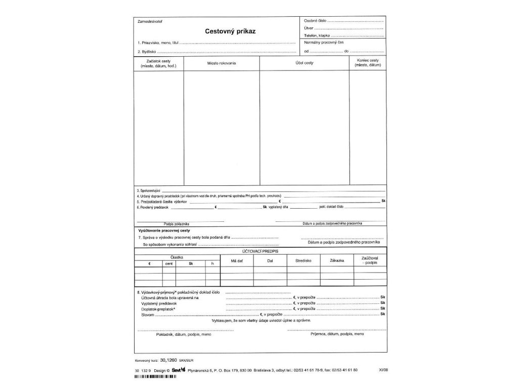 Cestovný príkaz formátu A4, v baleni 20 ks.