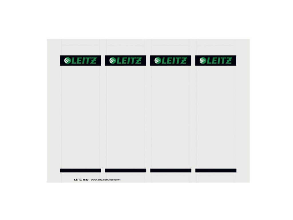 Náhradné zasúvacie papierové chrbtové štítky vhodné na potlač do laserových a atramentových tlačiarní a kopíriek cez jednoduchý internetový nástroj `EASYPRINT` na stránke www.esselte.com/easyprint. Kartónové, široké, pre široký zakladač. Štítky sú perforované na liste A4 pre ľahšiu manipuláciu. Pre zakladače Leitz 1010 (šírka hrebeňa 80 mm).