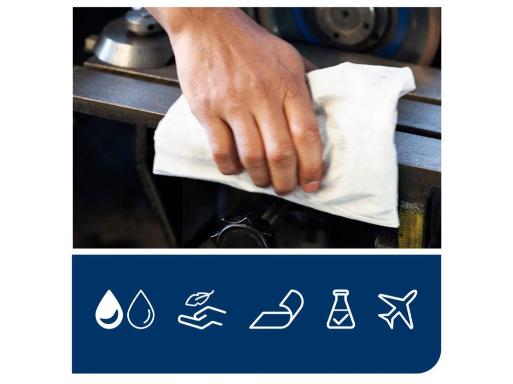 Viacúčelová čistiaca utierka Tork Heavy-Duty je vysoko absorpčná, hrubá a veľmi odolná, pričom vydrží silné utieranie bez toho, aby sa rozpadla. Možno ju použiť s väčšinou rozpúšťadiel a odstraňuje olej, mastnotu, vodu a odolné škvrny rýchlo a účinne, pričom chráni ruky pred vysokou teplotou a poškriabaním o kovové predmety. Túto utierku možno použiť v stojanových dávkovačoch Tork na podlahu či na stenu, ktoré sú vyvinuté pre bezpečnosť a účinnosť, prípadne v zásobníkoch so stredovým odvíjaním Tork Maxi alebo zásobníkoch na kotúč v boxe, ktoré sú vyvinuté pre dávkovanie jednou rukou.