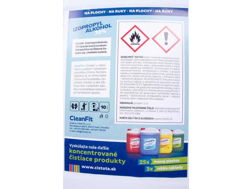 CleanFit alkoholový roztok IZOPROPYLALKOHOL 70% 10 l