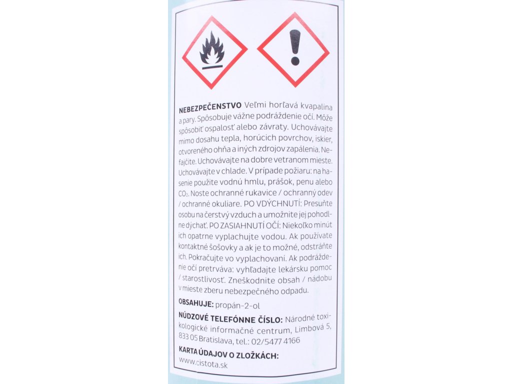 Účinné látky: propán-2-ol 700 ml/l