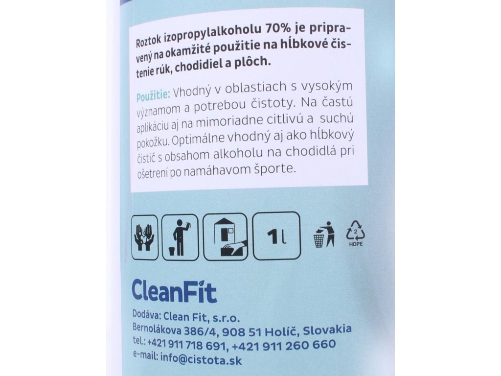 CleanFit alkoholový roztok IZOPROPYLALKOHOL 70% s rozprašovačom 1 l