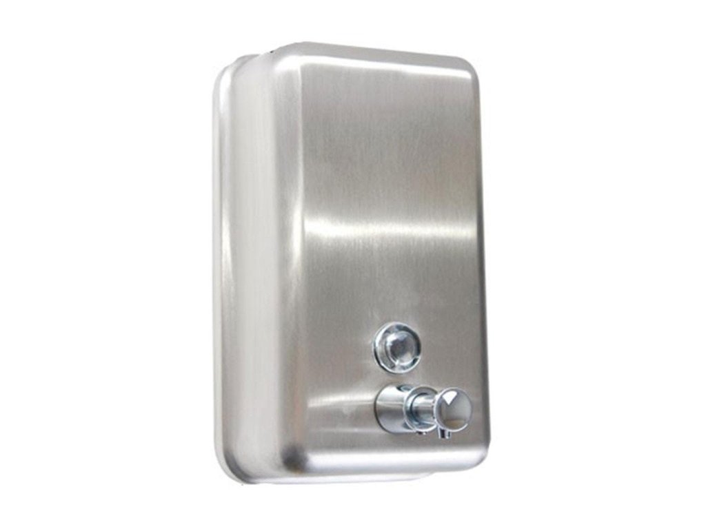 V elegantnom matnom prevedení dávkovač tekutého mydla a tekutej dezinfekcie - vhodný pre dolievanie z kanistra objem 1000 ml. Obsahuje nádržku na dolievanie, kvalitnú mosadznú pumpu, uzamykací systém na kovový zámoček, priehľadné okienko pre kontrolu stavu náplne.