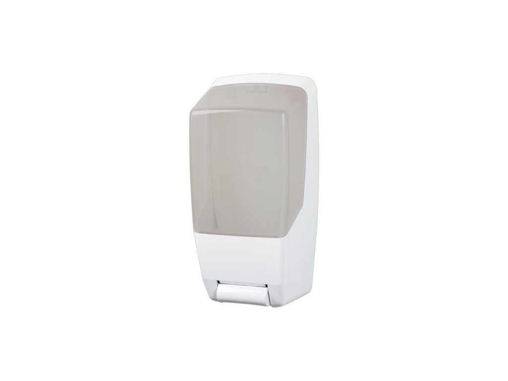 Dávkovač na abrazívne mydlo. Celoplastový, biely, s plexisklovým priezorom, ľahko ovládateľný a nenáročný na údržbu.