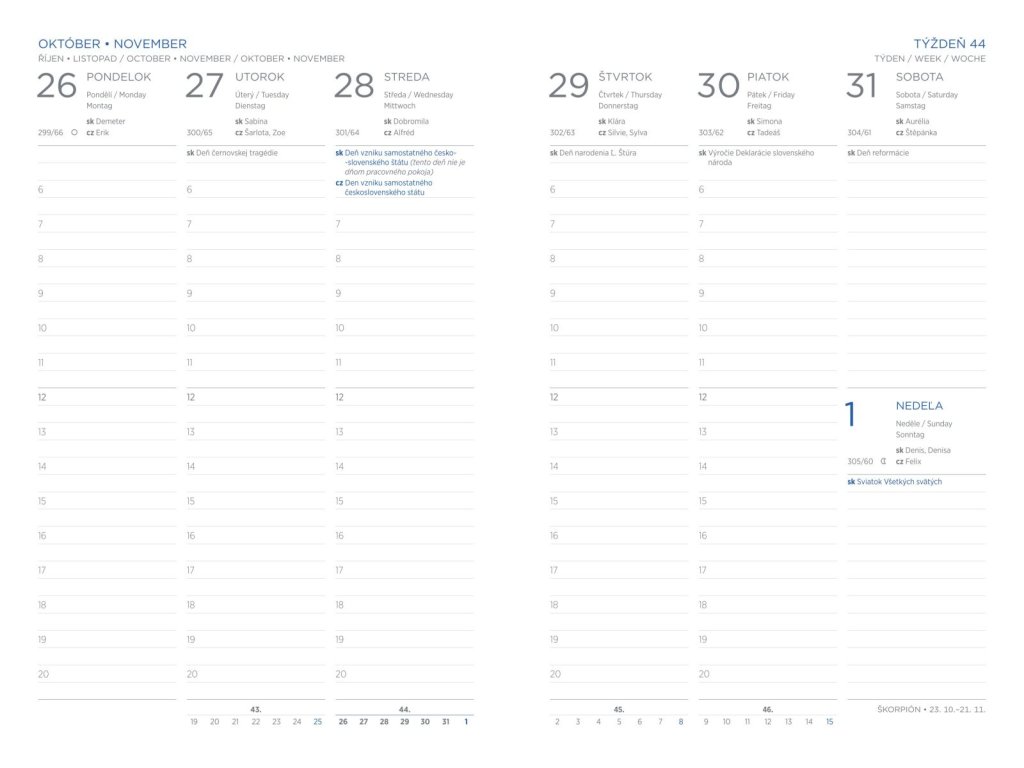 Formát: A5, 148 x 210 mm, týždenný