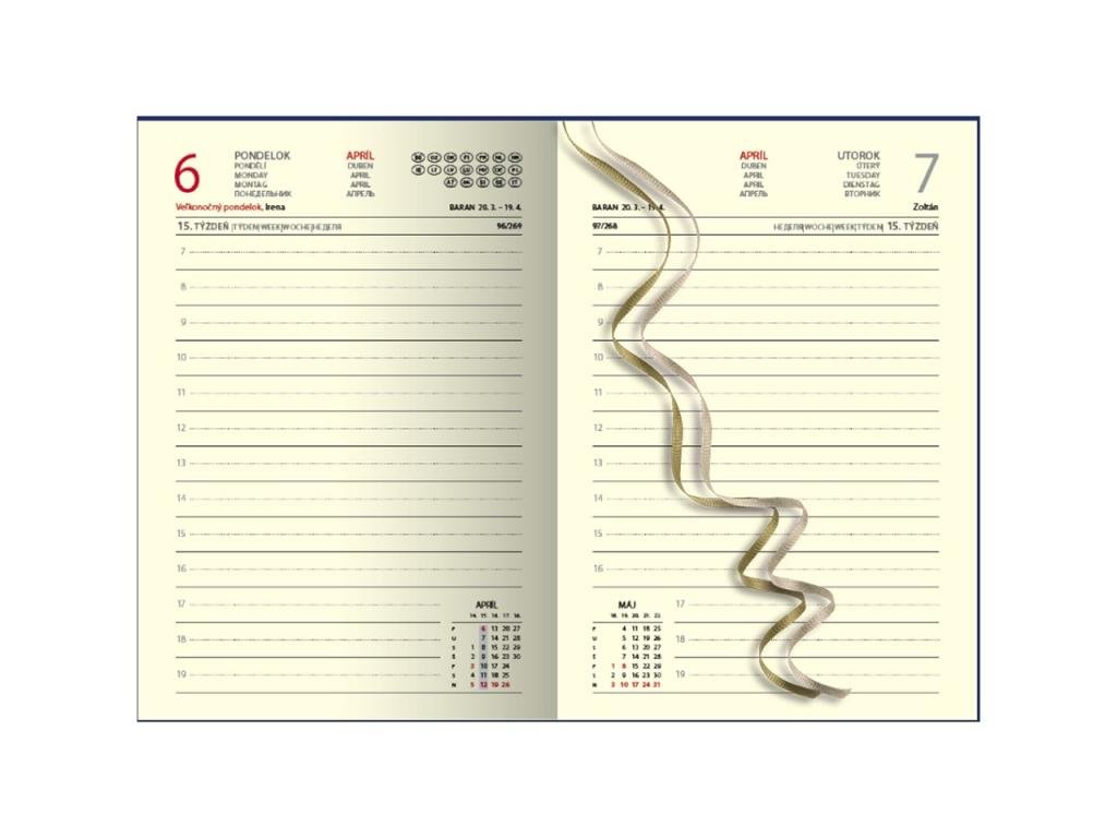Obľúbený denný diár s prehľadným kalendáriom na každý deň. Diár je v pevnej väzbe s prednou penovou doskou, jednoduchý dizajn dopĺňa strieborná razba roku. Obsahuje slovenské kalendárium.