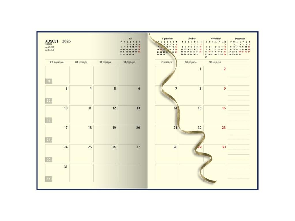Obľúbený týždenný diár s prehľadným kalendáriom na celý týždeň. Diár je v pevnej väzbe s prednou penou so slovenským kalendáriom. Jednoduchý dizajn dopĺňa strieborná razba roku.