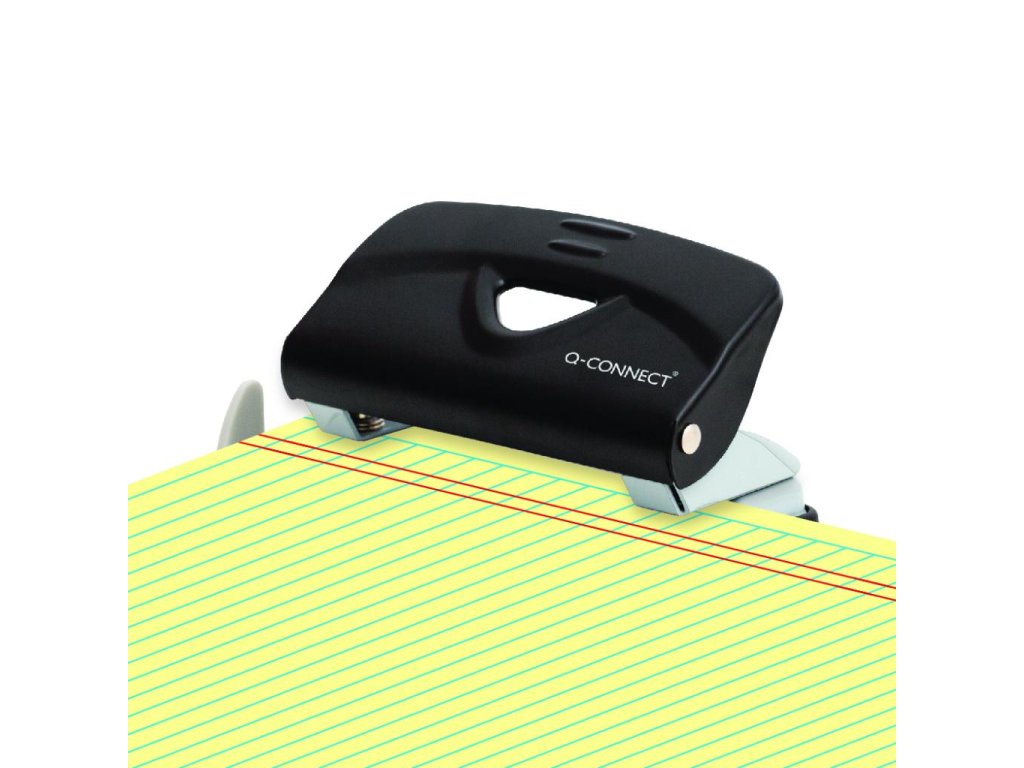 Pevná dierovačka s posuvným pravítkom. Prevedenie plast, mechanika kovová, ergonomický dizajn. Rozpätie dier 8 cm. kapacita dierovania 10 listov. Farba čierna/sivá