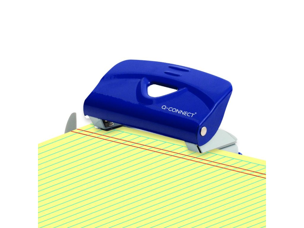 Pevná dierovačka s posuvným pravítkom. Prevedenie plast, mechanika kovová, ergonomický dizajn. Rozpätie dier 8 cm. Kapacita dierovania 10 listov. Farba modrá/sivá