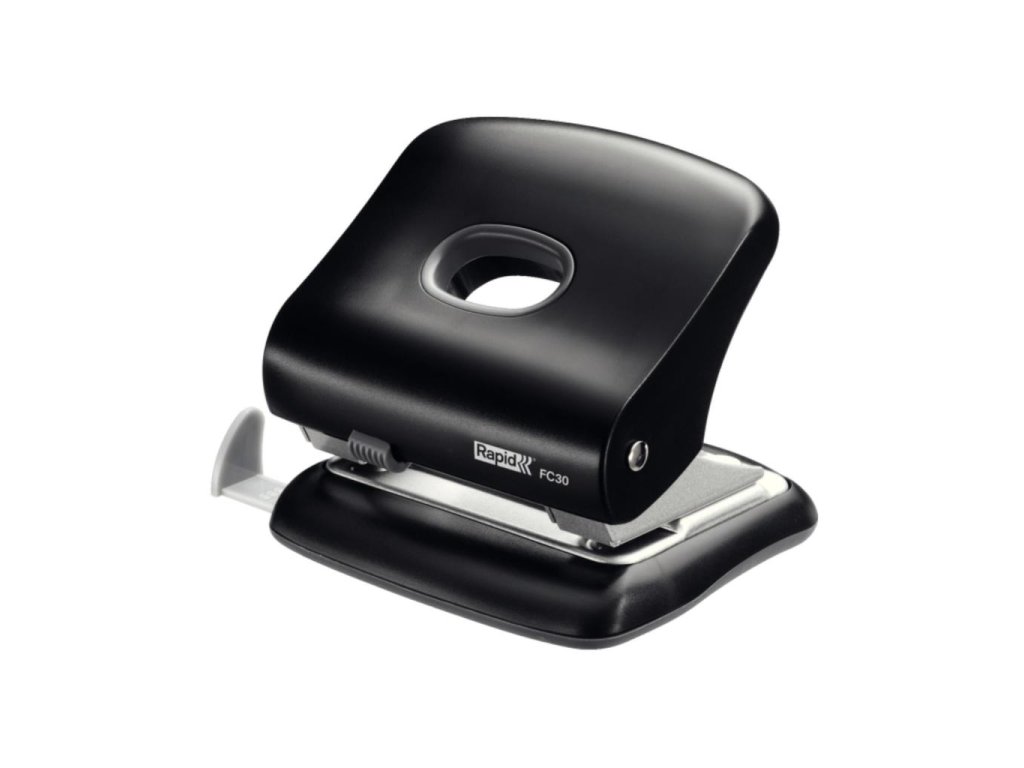Výkonná odolná kovová dierovačka s ramenom a základňou z vystuženého plastu ABS. Vhodná na použitie doma, v škole aj v kancelárii. Predieruje až 30 listov papiera (80 gsm). Pevná kovová konštrukcia zaisťuje dokonalé výsledky dierovania. Rameno a základňa z vystuženého plastu ABS. Zásobník na odrezky v plastovej základni, jednoduché vyprázdňovanie. Záruka 5 rokov. Farba čierna.