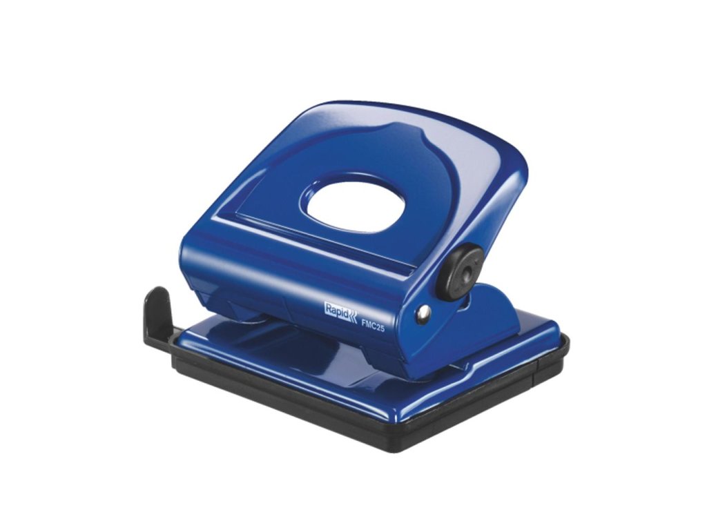 Odolný kovový dierovač s uzamykateľným ramenom na jednoduché skladovanie. Vhodný do kancelárie. Predieruje 25 listov. Balenie v škatuľke. Veľký zásobník na odrezky, jednoduché vyprázdňovanie. Farba modrá.