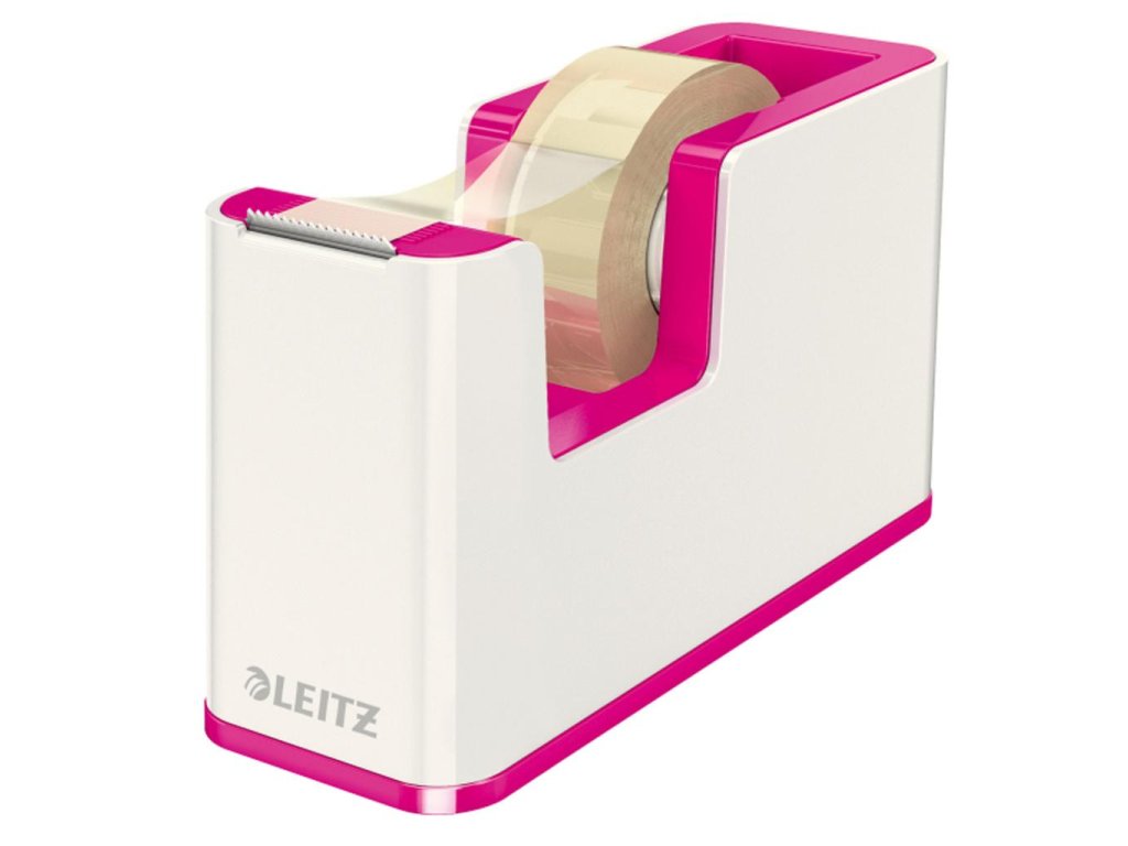 Atraktívny dispenzor s lepiacou páskou v dvojfarebnom prevedení v metalických farbách Leitz WOW s lesklým povrchom. V praktickom dizajne na pohodlné ovládanie jednou rukou. Farba ružová.