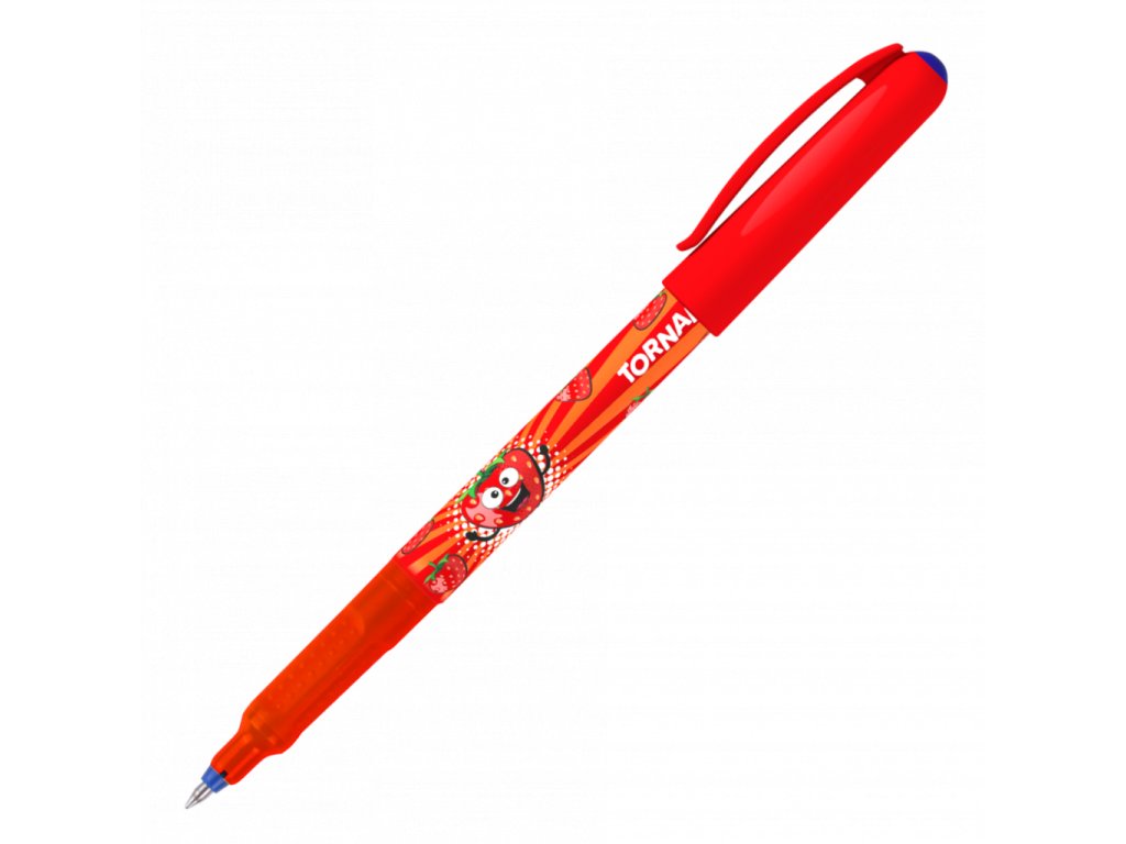 Roller pre školákov s ergonomickým držaním a masážnymi bodmi s modrým zmizíkovateľným a súčasne parfémovaným (banán, jablko, jahoda, malina, čučoriedka) atramentom. Pre ľavákov, pravákov i dysgrafikov. Šírka stopy 0,3 mm. Dodávaný v displeji 5 x 4 ks.