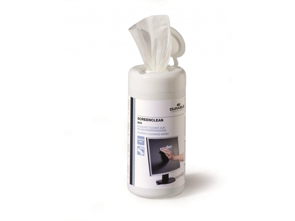 Mokré utierky balené v dóze s dispenzorom na odtrhávanie s možnosťou dopĺňania náhradnými utierkami. Sú vhodné na televízne obrazovky,monitory, notebooky, filtre a akékoľvek sklenené povrchy. Antistatické zloženie redukuje usadzovanie prachu. Bez obsahu alkoholu.V balení 100 útržkov.